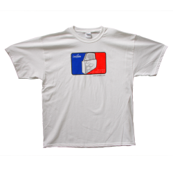 X-Large XL White Adult Custom AutoLoc Baseball Major League Short Sleeve Cotton Red and Blue T-Shirt Tee for Men / Women