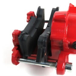 These high quality OEM Grade RED GM Iron Single Piston Calipers are for your 1978-88 GM mid-size cars (Cutlass, Grand Prix, Regal, Monte Carlo) 1982-1994 compact pickups (S10 S10 Blazer S15 Jimmy Sonoma Caballero) & ALL Mustang II, for stock height vehicles, Large Single Piston Calipers. Calipers consist of a housing, piston, seal, dust boot, and a bleeder valve and brake pads. These single piston calipers offer the high performance halting power you want and are built to mount in the stock location The single piston calipers are crafted with steel bodies, pistons, and high-temp seals. They provide low-maintenance with high performance and reliability for the street.