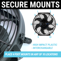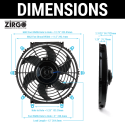 To ensure maximum performance, all Zirgo fans offer reversible blades allowing them to operate as pushers or pullers. Zirgo's four foot mounting brackets & ULTRA SLIM PROFILE ensures easy placement for maximum performance on your vehicles cooling system.