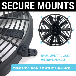 To ensure maximum performance, all Zirgo fans offer reversible blades allowing them to operate as pushers or pullers. Zirgo's four foot mounting brackets & ULTRA SLIM PROFILE ensures easy placement for maximum performance on your vehicles cooling system.