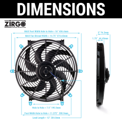 To ensure maximum performance, all Zirgo fans offer reversible blades allowing them to operate as pushers or pullers. Zirgo's four foot mounting brackets & ULTRA SLIM PROFILE ensures easy placement for maximum performance on your vehicles cooling system.