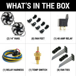 ZIRGO SUPER COOL PACKThis kit contains everything you need to install and control your Zirgo fan! Ideal for converting from a mechanical fan to enhance horsepower and efficiency. Also works great for oil, condenser, and transmission cooling. Works anywhere you need cooling.