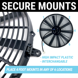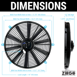 To ensure maximum performance, all Zirgo fans offer reversible blades allowing them to operate as pushers or pullers. Zirgo's four foot mounting brackets & ULTRA SLIM PROFILE ensures easy placement for maximum performance on your vehicles cooling system.