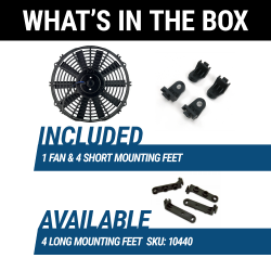 To ensure maximum performance, all Zirgo fans offer reversible blades allowing them to operate as pushers or pullers. Zirgo's four foot mounting brackets & ULTRA SLIM PROFILE ensures easy placement for maximum performance on your vehicles cooling system.
