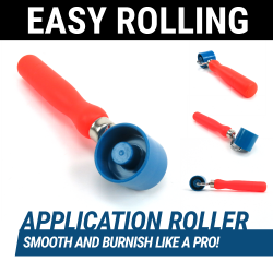Our heat and sound barrier application roller, features POM (polyoxymethylene) grip handle and roller. This flexible material supplies even pressure on uneven surfaces and allows the tool to do its job with minimal effort without tearing.