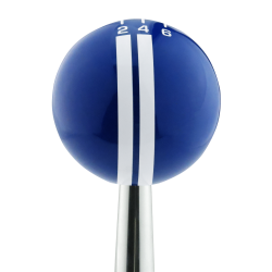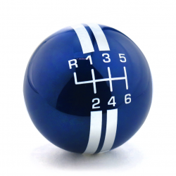 Give your interior ultimate race track styling with this Rally Stripe 6-Speed Shift Knob. This polished blue shift knob with white rally stripes and white shift pattern will really make a statement.