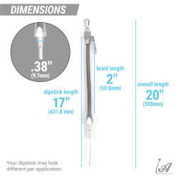 AutoLoc’s Billet Aluminum Engine Dipsticks are engineered for both aesthetics and functionality, featuring a Teflon®-lined braided stainless steel dipstick housing that provides a sophisticated look while ensuring rugged strength and extreme heat tolerance.