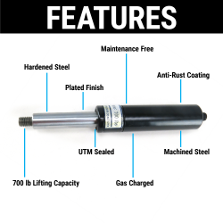 Whether you have a manual or automated door conversion, this strut will help to reduce pressure and make for easier opening and stability. They are also ideal for hoods, trunks, tonneau covers, or just about anything that needs a lift! Perfect for any application where heavy lifting is required.