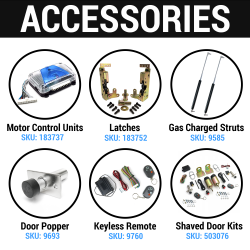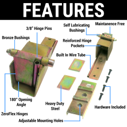 Autolöc’s revolutionary Suicide Hinge System offers rugged, heavy duty all steel construction with Zero-Flex Hinges and 3/8” hinge pins. Our unique notch design and adjustable mounting holes ensure proper door alignment. Self-lubricating bushings provide years of trouble free operation. Sold in pairs with recessed door pockets, mounting hardware, and extra bracing included.