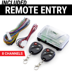 Our 8 Channel Programmable Keyless Entry System allows you to control up to 8 separate functions from one remote. The 8 channels/functions can be used to control any 12 Volt operations. Lock/unlock doors, pop hood/trunk, run windows up/down, activate horn, remote start, etc. (May require additional parts) Universal Kit. Works on any vehicle.