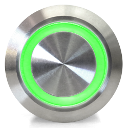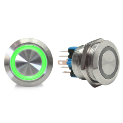22mm Latching Billet Push Button Switch with Green and/or Blue LED Light Illuminated Ring, SPDT.