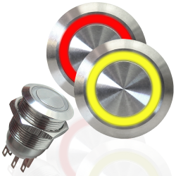 22mm Billet 12V Momentary Push Button Switch with Red and/or Yellow LED Ring SPDT.