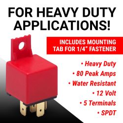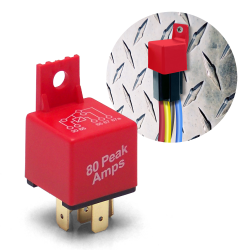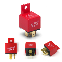 Keep It Clean's heavy duty 80-amp automotive relays are your best choice for any type of 12-volt wiring project where peak loads are going to exceed 80 amps. Designed to handle high automotive currents, Keep It Clean's single pole double throw 80-amp relays will never get stuck or short out.