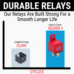 Keep It Clean relays are ideal for controlling any 12V accessories such as: Power Door Lock Actuators, Power Trunk/Hood/Hatch Solenoids, Linear Actuators, Air Compressors, Cooling Fans, Headlight Controllers, Power Windshield Wipers, and more!