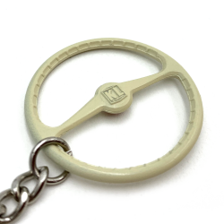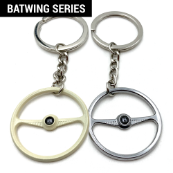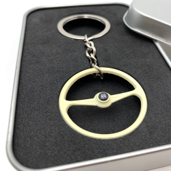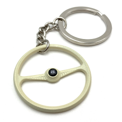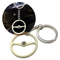A perfect 1949-55 Batwing steering wheel keychain! These keychains are perfect replica of the VW aircooled 1949-55 Batwing steering wheels from back in the day. Each Volkswagen steering wheel keychain offer identical scale details just like the factory volkswagan steering wheel. Percision cast from ally and then hand painted and assembled with a high quality chrome keychain & ring. You can customize your keychain by installing one of the 9 interchange horn buttons decals. These VW keychains are available in factory Beige and limited edition chrome. Makes the perfect gift for your Volkswagen aircooled fan!