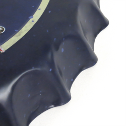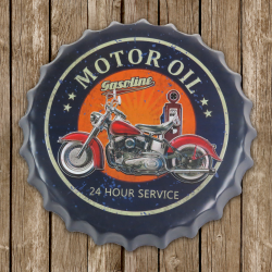 Our vintage style Bottle Cap signs are a fun way to dress up any garage, cafe, man cave or home bar. Made of durable metal and suitable for indoor or outdoor use. Measures 15-3/4” in diameter and comes with affixed back hook for easy installation. Dress up your man cave or bar with this hard to find item that is the perfect addition for the automotive or vintage enthusiast.