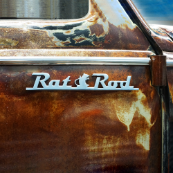 Dressing up your Rat Rod? This high quality script is made of casted zinc metal with a polished chrome finish. Mount on your hood, trunk lid, fender, dash, or any part of the vehicle.