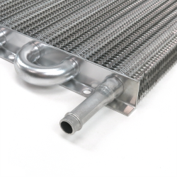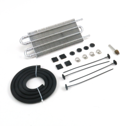 Slim design makes it simple to mount in remote locations. Advance finned aluminum design expedites the removal of heat from the fluid, while routing the air down the complete cooler length. Kit comes complete with cooler, fittings, mounting system, hardline adapter, clamps, and hose.