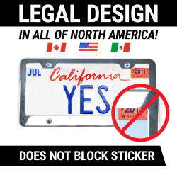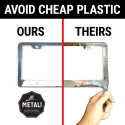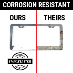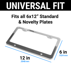 Unlike cheap plastic, silicone, or low quality unfinished metal, our metal frames won't rust, corrode, pit, or fade-out. Enjoy year round protection from car washes, rain, snow, humidity, UV and other normal day to day wear from the road. The universal design works on all standard and novelty 6" x 12" plates. Fits standard USA and Canada license plates, with optional top or bottom mounting.