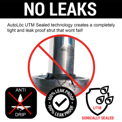 AutoLöc's gas strut includes an extra thick cylinder wall body that limits flex and internal distortion, protecting the internal parts from extreme temperature changes. The specially treated piston and rod surfaces serve to reduce friction, resulting in the lowest extension forces possible. Each strut is also ultrasonically sealed for years of leak proof lifting.