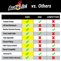 When searching for your next vehicle Latch Release System, make sure that your kit is Autoloc Bear Claw Certified! The Autoloc Chrome Bear Claw Door Latch Release Kit is guaranteed to work on even the toughest of latches. It is easy to install, and requires little to no maintenance. The pre-stretched stainless steel cable is also surrounded in weather resistant self lubricating housing, ensuring a long life of smooth and trouble free operation.