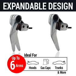 AutoLoc's ultra-stylish Dual Manual Pull Chrome Bear Claw Door Latch Release Handle Kit with Cable offers an easy and comfortable way to release any vehicle latch. This dual Latch Release System allows you to release 2 latches independently. The unique modular design also allows you to add additional levers to independently operate up to 6 latches in total. (Autoloc modular single lever Part# AUTARM)