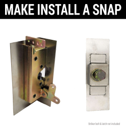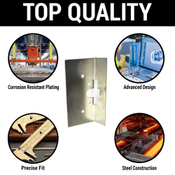 Kit includes door section mounting plates with die stamped screw holes to avoid scraping your door sill paint when closing, as well as floating striker bolt plates to ensure easy alignment and installation. Fits large dual bear claw latches.