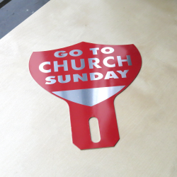 Vintage Parts license plate toppers are ideal for hot rod, street rods, rat rods, and customs. Made from sheet metal, stamped with precision then painted to bring out the details. Can be mounted on top or bottom of the frame. Includes slotted mounting hole for height adjustment. This item is made to mount to the top of your license plate and will accept a 1/4” bolt for attachment.