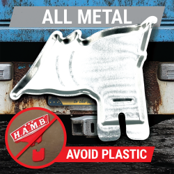 Vintage Parts license plate toppers are ideal for hot rod, street rods, rat rods, and customs. Made from sheet metal, stamped with precision then painted to bring out the details. Can be mounted on top or bottom of the frame. Includes slotted mounting hole for height adjustment. This item is made to mount to the top of your license plate and will accept a 1/4” bolt for attachment.