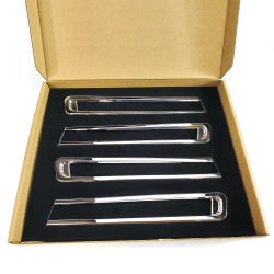 Each Scallop is made from high quality metal and chromed to a brilliant luster. Reinforced pins and top quality materials ensures a long life and easy OEM installation.