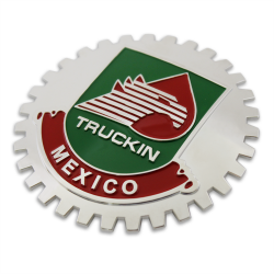 Chrome Grill Badge Truckin Mexico Flag Banner Medallion Emblem Decal Crest