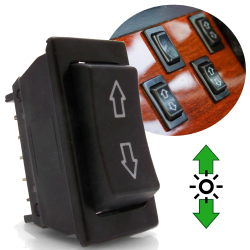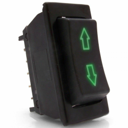 3 Position 12 Volt Momentary Rocker Switch with LED Illuminated Green Arrows.