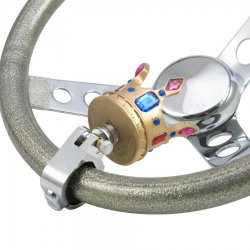 This hand-crafted and vividly painted custom knob is made from durable resins for long lasting good looks. We added a machined all metal universal insert that fits all of our adapters so it not only fits every car but also provides rock-solid steering.