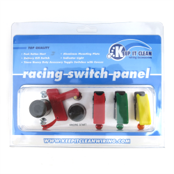 Keep It Clean's racing switch panels give you total command over your vehicle functions by packaging switches together in one easy-to-access panel. Simply install one of our switch panels for access to multiple functions such as engine start and battery kill. Each kit offers an ultra light rigid plate with mounting holes in each corners and detail print indicators. Available with several switch options, engine start buttons, and battery disconnects.