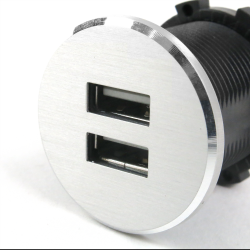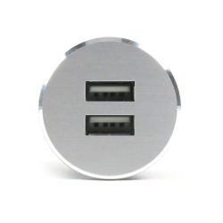 Silver Dash Mount Dual Port USB Charger - Replaces Cigarette Lighter