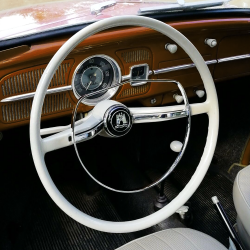 This VW steering wheel horn button ring is a direct bolt* on for Volkswagen Type 1 Beetle, Karmann Ghia, and VW Type 3 steering wheels.
