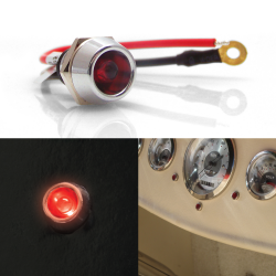 Universal Indicator Light Red 12v LED Deluxe Chrome Ring Pre-wired Thread Mount Classic Vintage Dash Panel Gauge Warning Idiot Turn Signal High Beam Cruise Hot Rat Rod Car Motorcycle Boat - Each