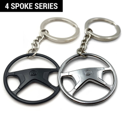 A perfect 1972-80 VW Standard 4 Spoke steering wheel keychain! These keychains are perfect replica of the VW aircooled 1972-80 VW Standard 4 Spoke steering wheels from back in the day. Each Volkswagen steering wheel keychain offer identical scale details just like the factory volkswagan steering wheel. Percision cast from ally and then hand painted and assembled with a high quality chrome keychain & ring. You can customize your keychain by installing one of the 9 interchange horn buttons decals. These VW keychains are available in factory Black and limited edition chrome. Makes the perfect gift for your Volkwsgaen aircooled fan!