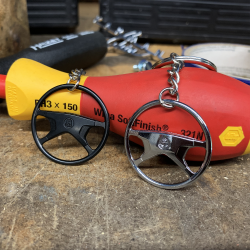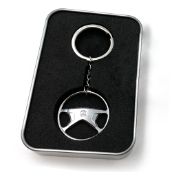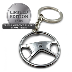 This chrome version is part of a limited edition first release of just 500 units. Each one includes a nice gift box and automatic registration of authenticity. Each Keychain Style available in 9 different vintage aircooled Volkswagen steering wheels designs!