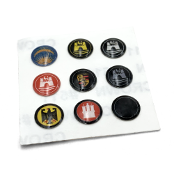 Upgrade your VW Steering Wheel Keychain horn button to these cool designs. Each Volkswagen keychain horn button is micro printed to offer the most detail and offers 3M adhesive on the back. Installation is just peel and stick! Will fit all 4mm horn button keychains. Includes assortment of 9 horn button designs.