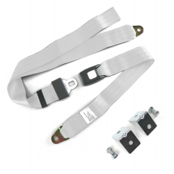 2Pt. White Standard Buckle Lap Seat Belt with Mounting Hardware.