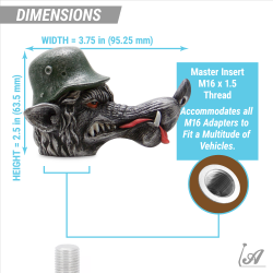 This hand-crafted and vividly painted custom shift knob is made from durable resins for long lasting good looks. We added a machined all metal universal insert that fits all of our adapters so it not only fits every car but also provides Rock-Solid Shifting.