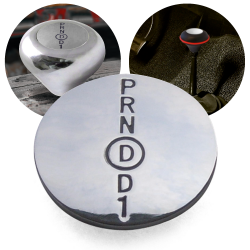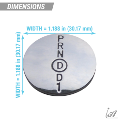 This polished button medallion features the PRNDD1 shift pattern. See below if you would prefer a different shift pattern medallion.