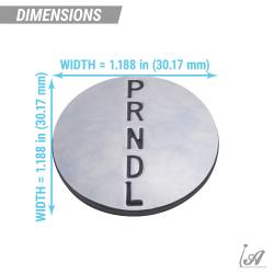 This polished button medallion features the PRNDL shift pattern. See below if you would prefer a different shift pattern medallion.