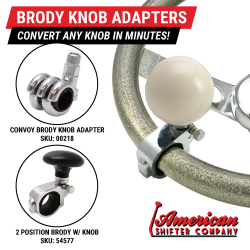Each insert is 16X1.50 threaded and includes a matching jam nut for easy installation. This insert can be adapted to fit any vehicle on the market with American Shifter’s screw-in adapters that are available in several sizes. Use American Shifter’s suicide brody knob adapter to convert any shift knob into a brody steering wheel knob and steer with ease.