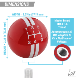 Red Shift Knob With White Rally Stripe- 5 Speed Shift Pattern- M16x1.5 Insert