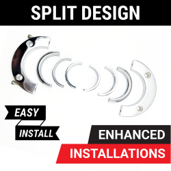 AutoLöc's Chrome Billet Aluminum Steering Column Mount is the ideal choice when mounting almost any steering column in your vehicle. The unique split design makes for an easy install without having to pull out your entire column. This floor/firewall mount is designed to wrap around your column, securely mounting the column to the floor or firewall. The inner collar also pivots to accommodate to any floor or wall angle. Each mount includes three different sets of inner sleeves to fit most common column widths.