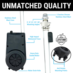 Frenched AM FM HD Car Radio Power Antenna Automatic 12V Electric Stainless Steel Aerial Chrome Mast Motorola Plug Heavy Duty Factory OEM Replacement Waterproof Sealed Motor with Multiple Angle Mounts