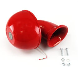 The El Toro™ Electric Bull Horn System offers maximum power in a compact, rugged, bright red package. This 12V horn operates at 12V 8 amps, boasts an output of 1155db, and hooks up with just one wire.