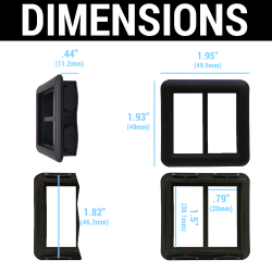 This double switch bezel fits Autoloc switch SKU: 82338, and can also be used as a replacement for those found in Autoloc switch kit SKU: 10002. Additional bezel shapes, styles, and configurations are available. Autoloc switches are also compatible with switches from various other brands. Please see item dimensions for reference.
